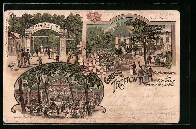 Lithographie Treptow, Kaiser Wilhelm Garten mit Sommer-Theater