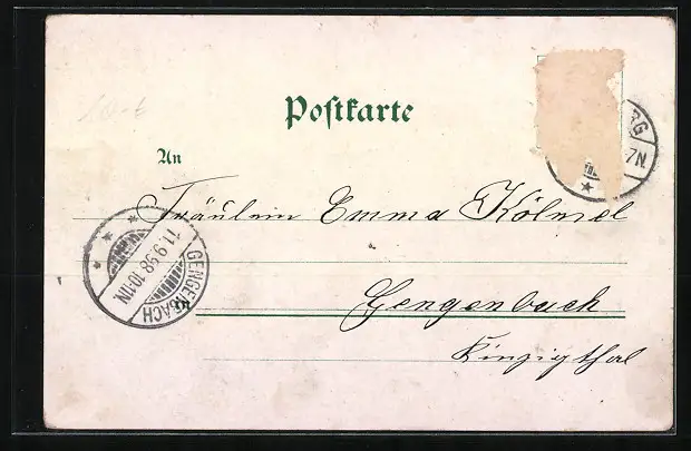 gelaufen 1898, Briefmarke entfernt, rückseitig Oberflächenschaden, guter Zustand