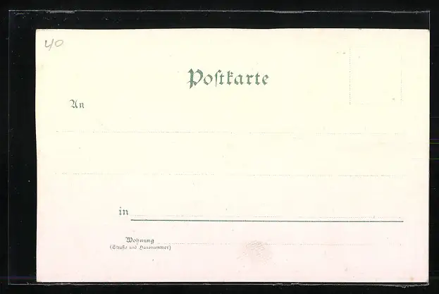 Personenbezogene Daten auf der Rückseite der Karte wurden durch blauen Textmarker unkenntlich gemacht. Die blauen Stellen sind auf die Vorderseite durchgeweicht und wirken sich negativ auf das Postkartenfoto aus