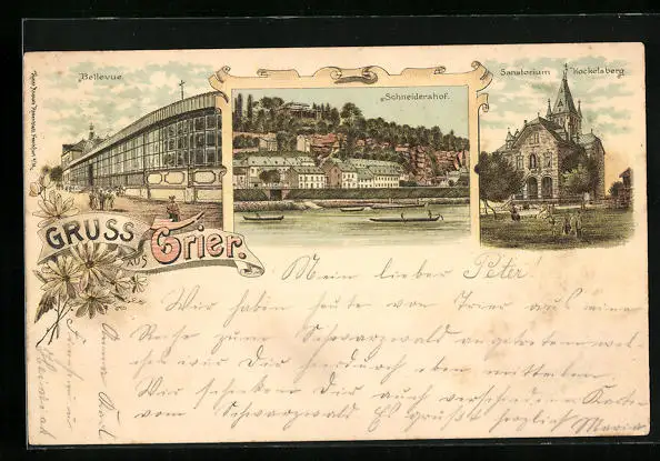 Lithographie Trier, Schneidershof, Sanatorium Kockelsberg, Bellevue