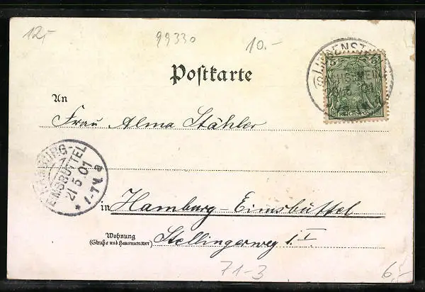 gelaufen 1901, Eckknick links unten, guter Zustand