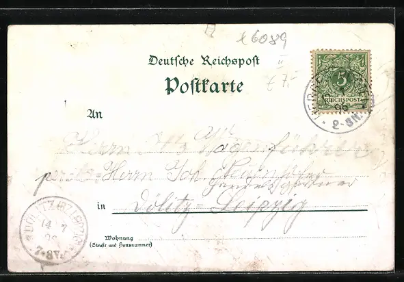 gelaufen 1896, minimale Einrisse oben mittig, guter Zustand