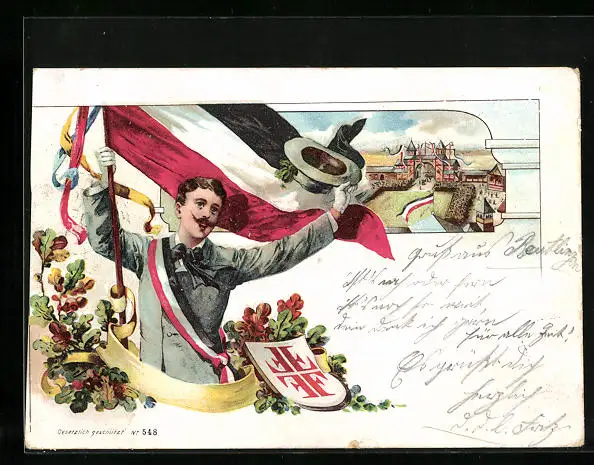 Lithographie Turner mit Fahne winkt mit seinem Hut