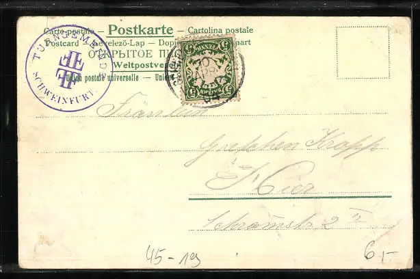 gelaufen 1904, Eckknick re. unten, guter Zustand