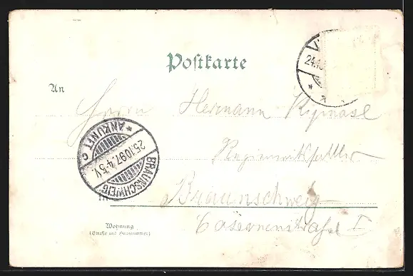 gelaufen 1897, Briefmarke entfernt, guter Zustand