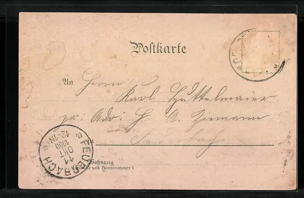 gelaufen 1900, Briefmarke entfernt, Eckknick li. oben, guter Zustand