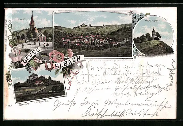 Lithographie Uhlbach, Rothenberg, Mélag-Turm, Kirche