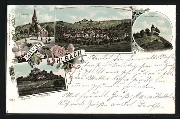 Lithographie Uhlbach, Rothenberg, Mélag-Turm, Kirche