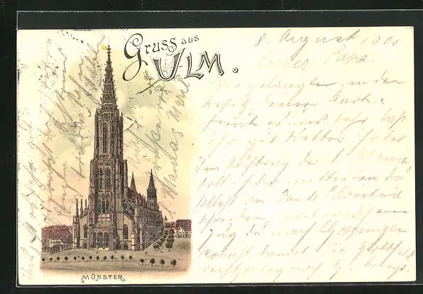 Lithographie Ulm, Ansicht des Münsters