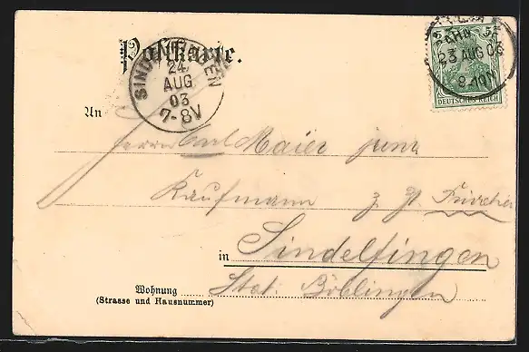 gelaufen 1903, Eckknick re. unten, guter Zustand