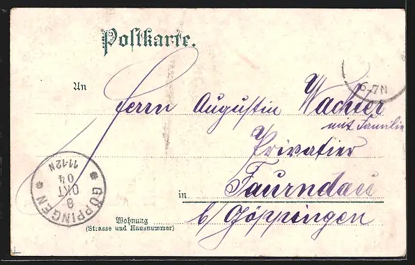 gelaufen 1904, Briefmarke entfernt, guter Zustand