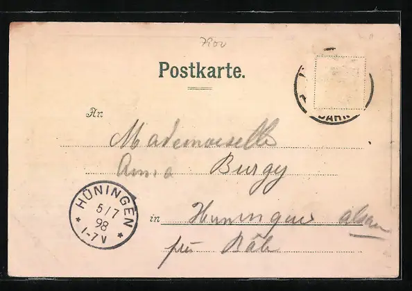 gelaufen 1898, Briefmarke entfernt, Eckknick re. oben, guter Zustand