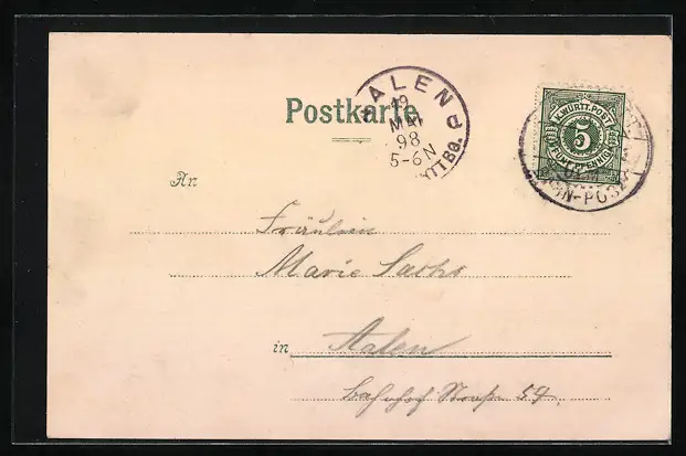 gelaufen 1898, Eckknicke oben, guter Zustand