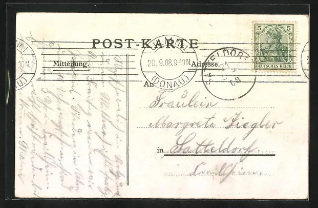 gelaufen 1908, Stempelspur, Eckknick li. unten, guter Zustand