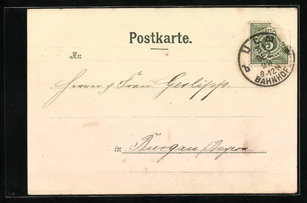 gelaufen 1898, Briefmarke tw. entfernt, guter Zustand