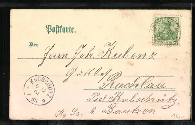 Personenbezogene Daten auf der Rückseite der Karte wurden durch blauen Textmarker unkenntlich gemacht. Die blauen Stellen sind auf die Vorderseite durchgeweicht und wirken sich negativ auf das Postkartenfoto aus