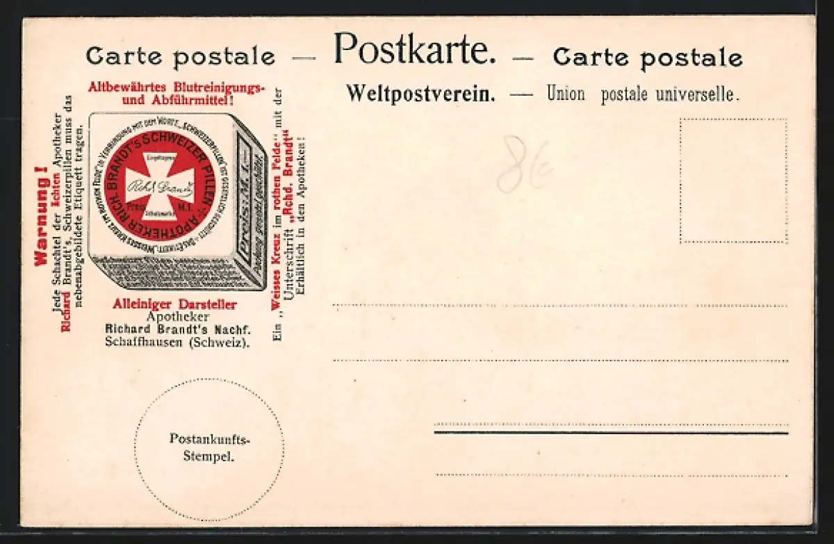Personenbezogene Daten auf der Rückseite der Karte wurden durch blauen Textmarker unkenntlich gemacht. Die blauen Stellen sind auf die Vorderseite durchgeweicht und wirken sich negativ auf das Postkartenfoto aus