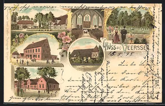 Lithographie Veerssen, Gasthof Hausmeier, Kirche