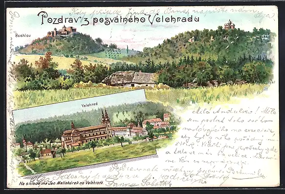 Lithographie Velehrad, Buchlow, Totalansicht, Celkovy pohled