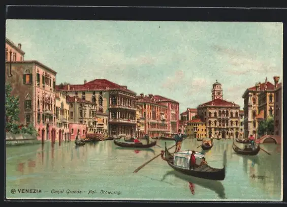 Lithographie Venezia, Canal Grande, Pal. Browning