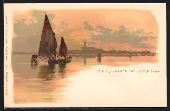 Lithographie Venezia, Laguna con barca Pescaseccia