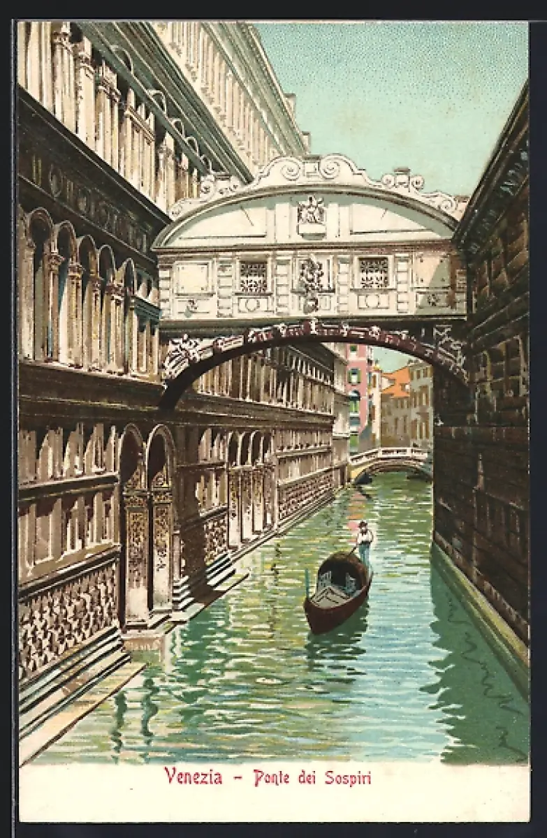 Lithographie Venezia, Ponte dei Sospiri um 1900