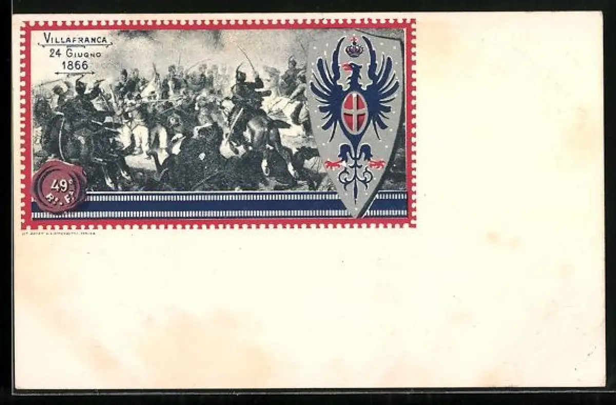 Lithographie Villafranca, 49o Reggimento Fanteria, Soldaten des Infanterie-Regiments im Gefecht