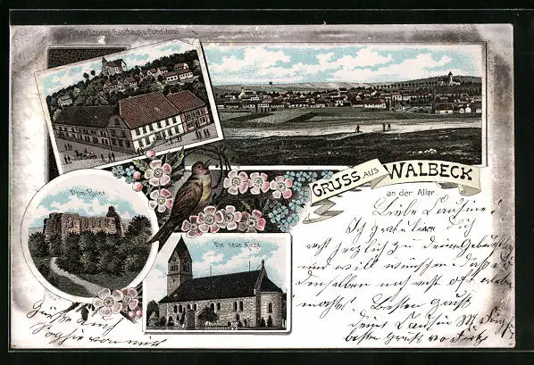 Lithographie Walbeck, Neue Kirche, Domruine, Totalansicht