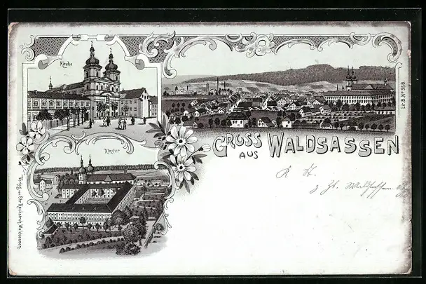 Lithographie Waldsassen, Kloster, Totalansicht, Kirche