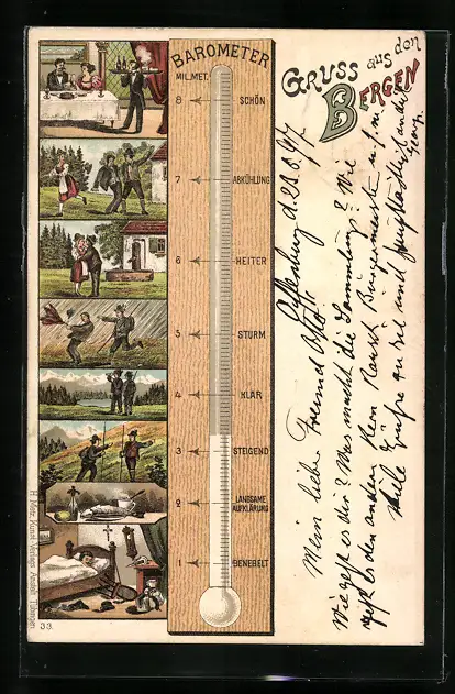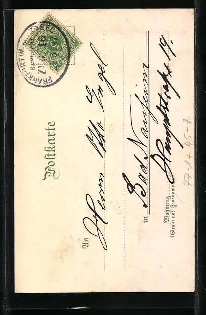 Personenbezogene Daten auf der Rückseite der Karte wurden durch blauen Textmarker unkenntlich gemacht. Die blauen Stellen sind auf die Vorderseite durchgeweicht und wirken sich negativ auf das Postkartenfoto aus