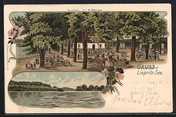 Lithographie Wandlitz, Gasthaus Forsthaus, Liepnitz-See