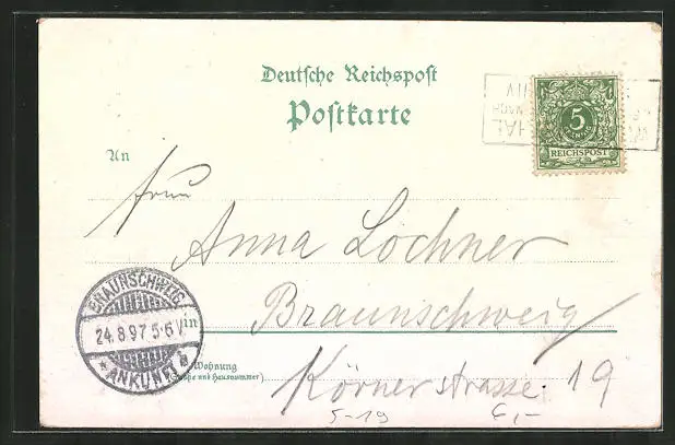gelaufen 1897, Stempelspur, sonst guter Zustand