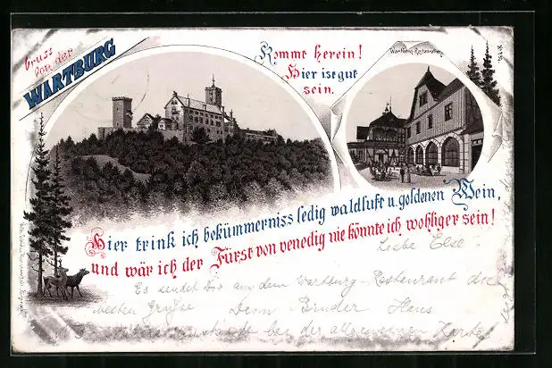 Lithographie Wartburg, Totalansicht, Wartburg-Restauration