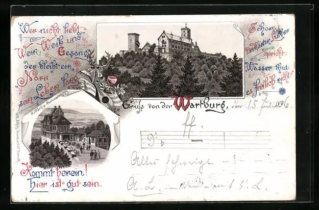 Lithographie Wartburg mit Restauration