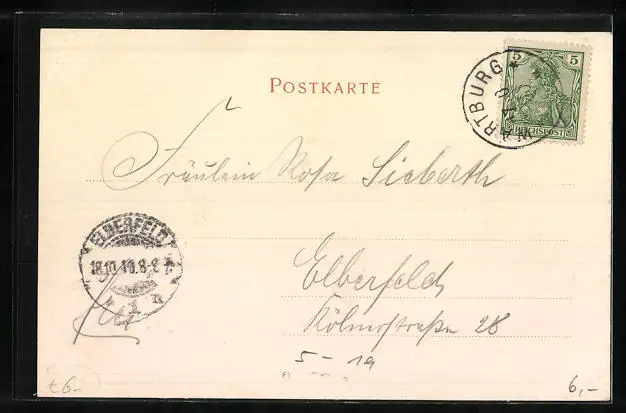 gelaufen 1910, Eckknick li. unten, guter Zustand