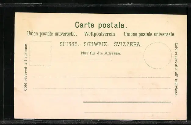 Personenbezogene Daten auf der Rückseite der Karte wurden durch blauen Textmarker unkenntlich gemacht. Die blauen Stellen sind auf die Vorderseite durchgeweicht und wirken sich negativ auf das Postkartenfoto aus