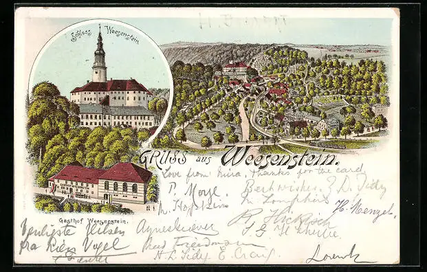 Lithographie Weesenstein, Schloss, Gasthof Weesenstein