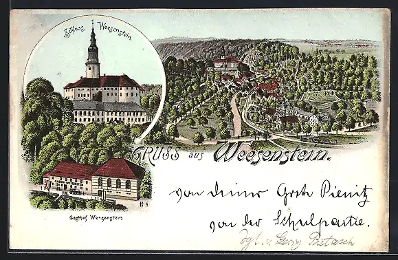 Lithographie Weesenstein, Schloss, Gasthof Weesenstein
