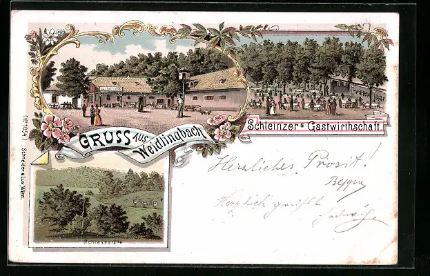 Lithographie Weidlingbach, Schleinzers Gasthof, Schessstätte