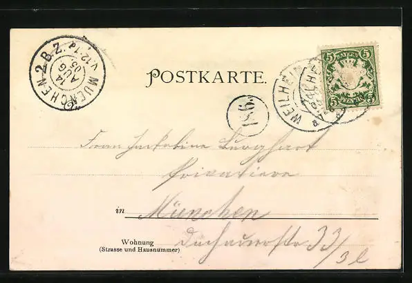 gelaufen 1905, Bugspuren oben li., guter Zustand