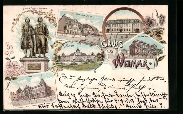 Lithographie Weimar, Museum, Schiller Haus, Post