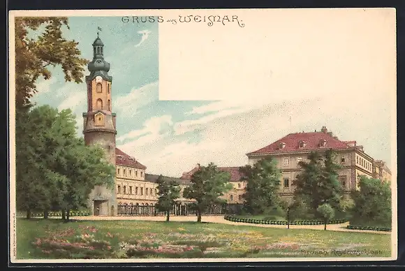Lithographie Weimar / Thüringen, Residenzschloss