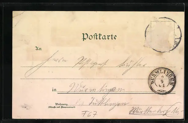 gelaufen 1901, Briefmarke entfernt, Eckknick re. oben, guter Zustand