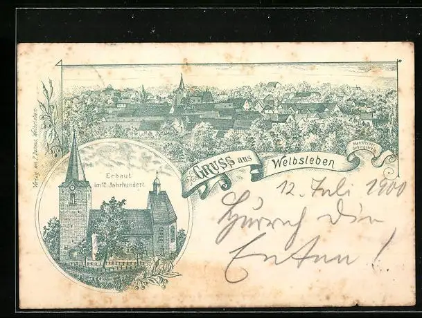 Lithographie Welbsleben, Totalansicht mit Kirche