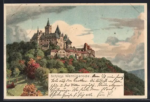 Lithographie Wernigerode, Ansicht vom Schloss