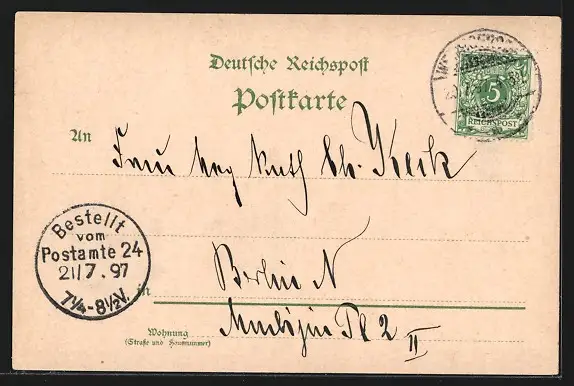 gelaufen 1897, Eckknick u. Einriss re. oben, guter Zustand