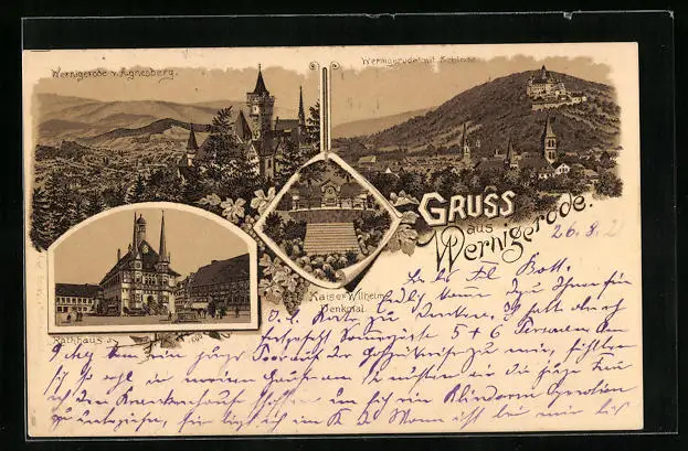 Lithographie Wernigerode, Schloss, Rathaus, Panorama
