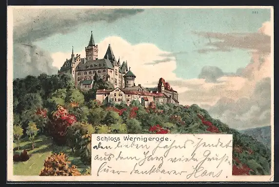 Lithographie Wernigerode, Schloss Wernigerode