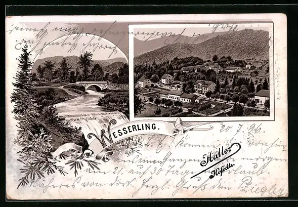 Lithographie Wesserling, Totalansicht, Flusslauf