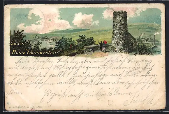 Lithographie Wetter / Ruhr, Ruine Vollmarstein